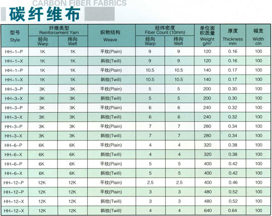 → 碳纤维布参数 > 产品参数: