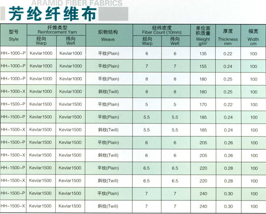 → 芳纶布参数 > 产品参数: